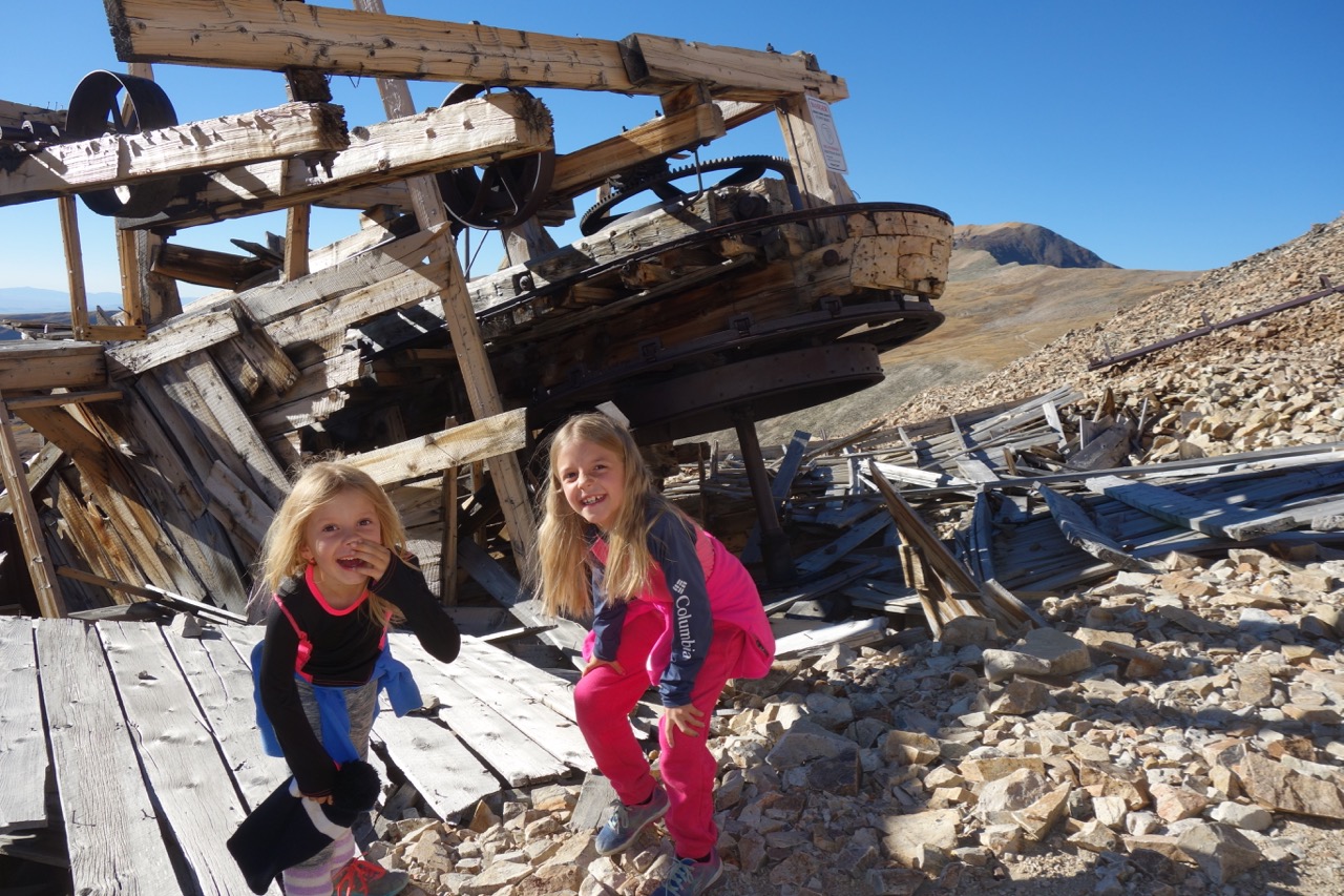 I roused the girls at 4am and we were in the car in no time. Wendy waved us off and went back inside and snuggled under the covers while we zoomed off into the pre-dawn night. We reached the Fourmile Creek Rd outside of Fairplay in about an hour and then the adventure began. The road is rough and narrow. It passes an old abandoned mine building that practically hangs over the road. I pointed it out to the girls and between the darkness, the ominous building and the sparkling stars they were pretty impressed. Score for Dad.