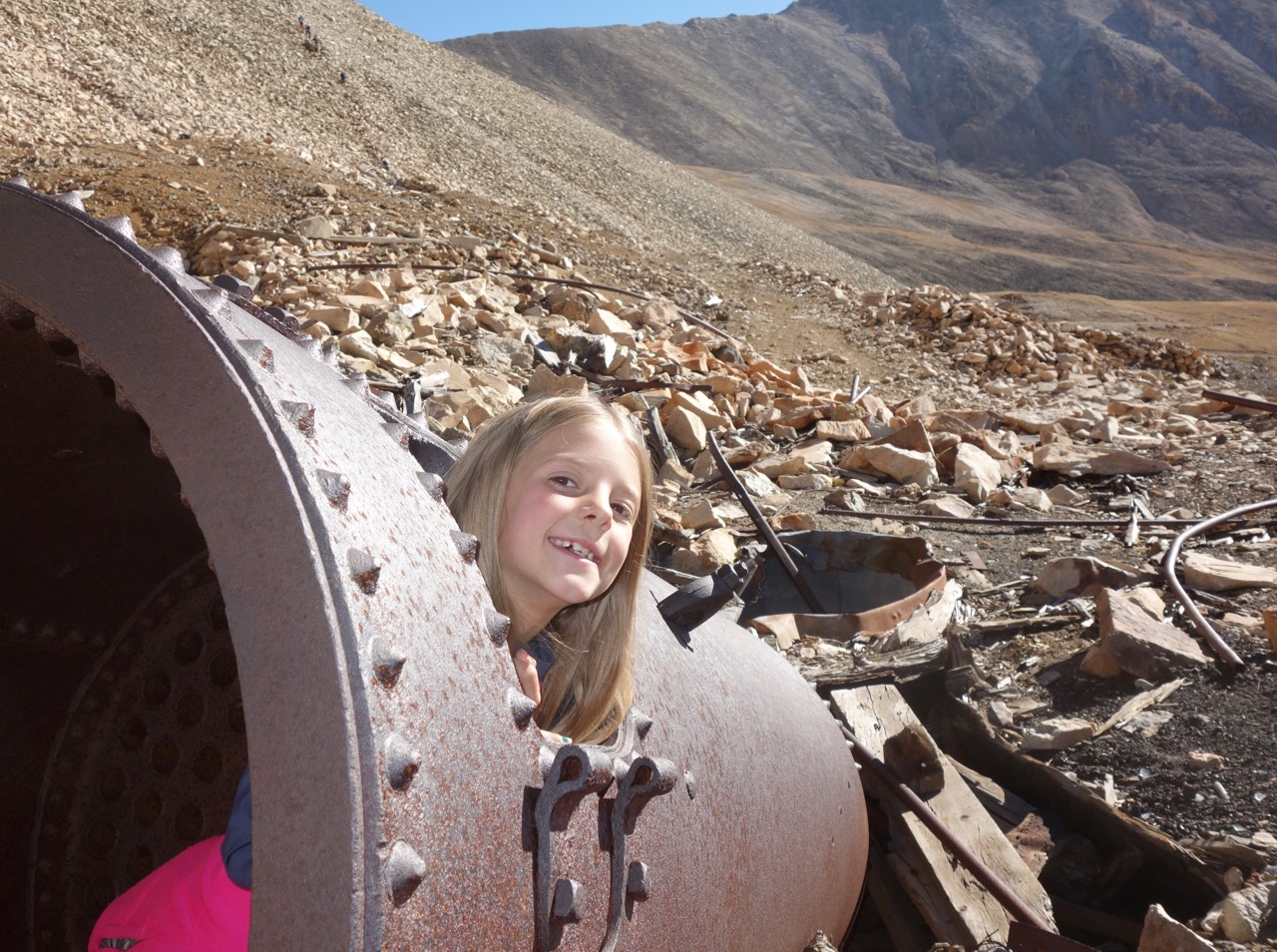 We explored everything and took a different route down. One section was very steep and we had to use all fours to keep from falling through the rock gardens. The abandoned mining facilities provided endless fascination and not a little awe at the hardiness of those who built such structures in such locations. We found cool rocks and searched for more. We found tiny flowers hidden amongst the boulders that we never noticed before in our march for the summit.
