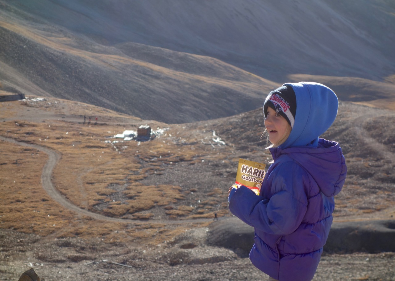 The beginning of the hike was hard, and cold. I think they were stunned by the temperature, and the altitude and the incline of the road, and the lack of trees. Put it all together and the jolt from warm bed to cold, barren, high-altitude tundra was shocking. It took a while to settle in, but they did and we found a rhythm after a while. Slower than I would have liked, I was constantly playing drill sergeant, on your feet, let's go, a little faster, keep moving, stop stopping. And so on. It was at the point in the hike when I was sure we would reach the summit, and there was no other point to this outing. Thankfully, that slowly began to change.